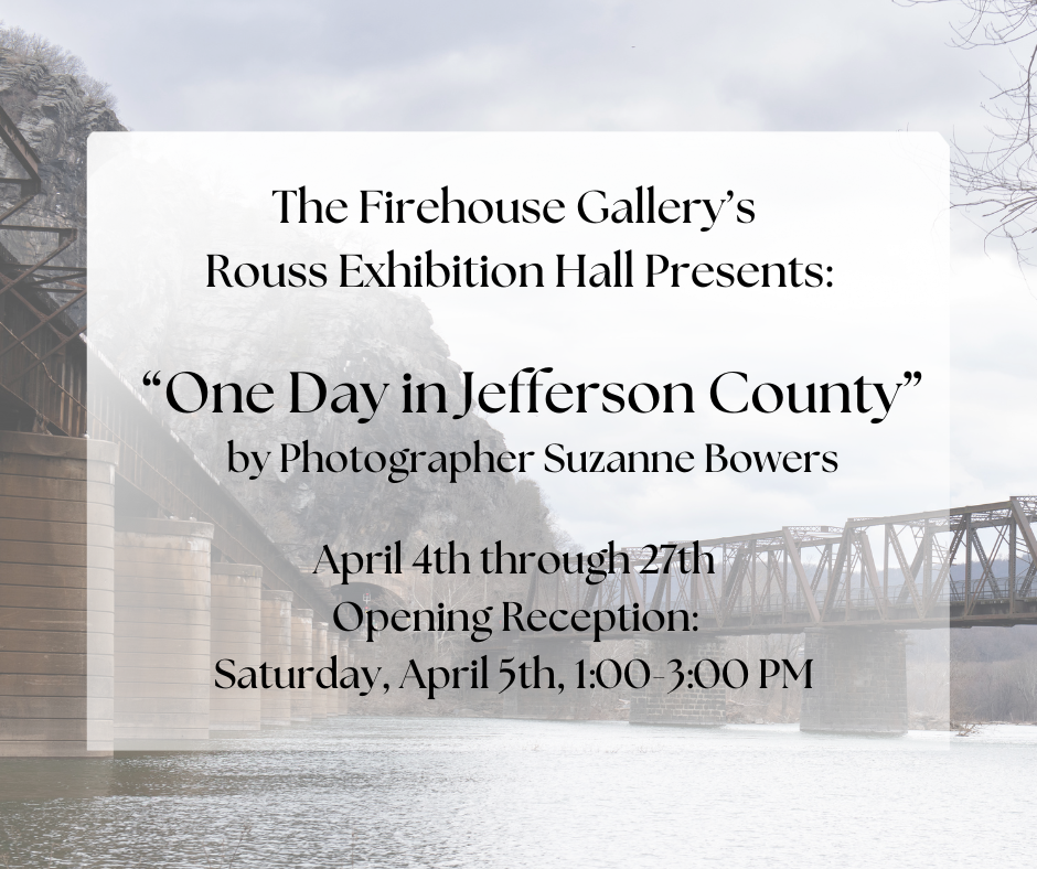 Photographer Suzanne Bowers presents a unique solo exhibition in the Rouss Exhibit Hall at the Firehouse Gallery, capturing the beauty and diversity of Jefferson County, all in a single day. From the starry pre-dawn skies near Harpers Ferry at 4 AM to the nightscapes of downtown Charles Town at 9 PM, this collection showcases a full day’s transformation while demonstrating the skill and vision behind an entire exhibit created in just 24 hours.