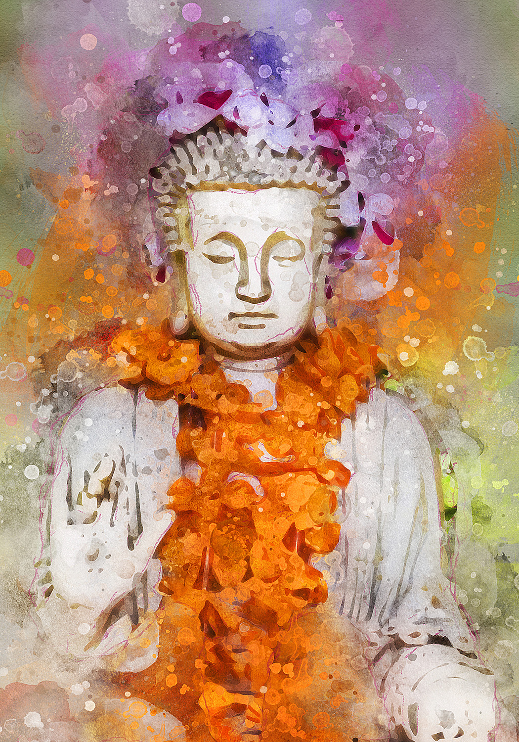 In his digital photo paintings, Slade begins with his own photographs of sites, artifacts, and culturally meaningful objects from places he has lived or visited around the world. He then layers color, pattern, and abstraction over or around those photographs, creating compositions that evoke place and culture. In his remixed historical prints, he works from high-resolution, public domain artworks like Japanese woodblock prints, illuminated manuscripts, or zoological illustrations. He digitally restores, colorizes, edits and reinterprets them, adding or subtracting elements in harmony with his visual vocabulary. Both styles culminate as fine art giclée, printed on canvas or archival papers.